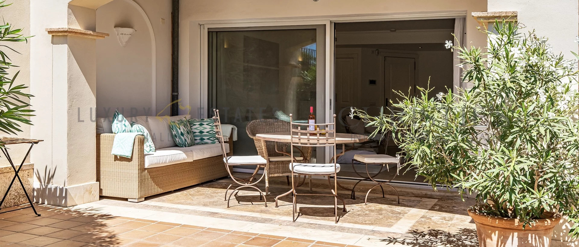 Die Luxus Apartmentanlage "Gran Folies" in Puerto de Andratx, liegt in der Bucht Cala Llamp, einem Ortsteil des bekannten Hafenortes im Südwesten der Insel. Neben einem Clubhaus mit Rezeption, Wellnessbereich mit Saunen und Fitnessbereich sowie einem grossen Innenpool, stehen den Eigentümern auch 2 große Außenpools zur Verfügung. Service wird in dieser Apartmentanlage großgeschrieben. Die Rezeption ist tagsüber durch Mitarbeiter der Eigentümergemeinschaft und nachts durch einen privaten Sicherheitsdienst besetzt.Gartenapartment in Gran Folies – Luxus, Privatspa und mediterraner Rückzugsort